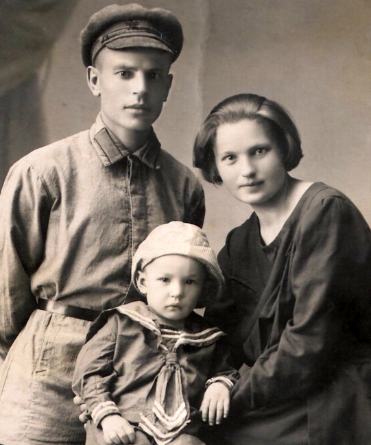 Семья Михеевых: Агафон Ефремович, его жена Михеева Мария Константиновна и сын Гена. Тара, 1926 г.