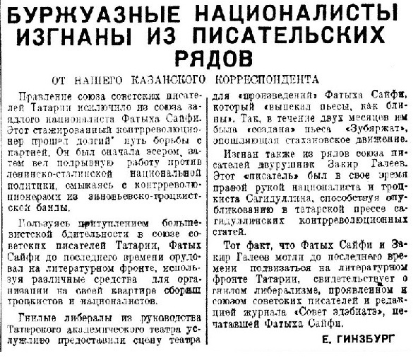 Публикация журналистки, жены председателя Казанского горсовета Павла Аксёнова Евгении Гинзбург в "Литературной газете" (№ 55 за 1936 год)