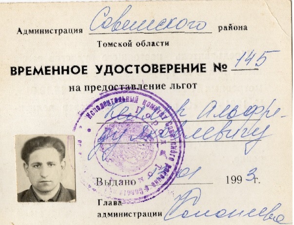 Житель города Томска. Из семьи немцев, высланных в 1945 г. на спецпоселение из Германии в Томскую область. Жена из раскулаченных русских крестьян