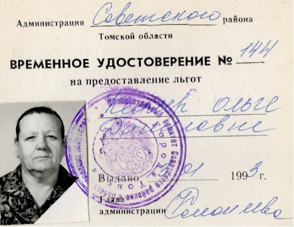 Временное удостоверение жены А.Я. Келлера, выданное после ее реабилитации