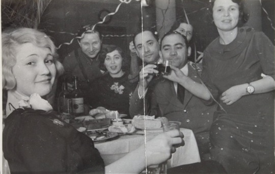 На фотографии запечатлена встреча нового, 1937 года. Берта стоит справа, вероятно, около своего мужа Бориса (его отдельной фотографии не сохранилось). На ее руке элегантные часы: скоро они попадут на хранение в Московское городское финансовое управление вместе с многими другими вещами супругов Кругляк, включавшими мебель, личные вещи и даже детские трусы...