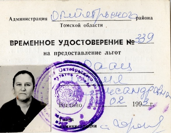 Удостоверение, выданное М.А. Раац на право получения льгот во Закону "О реабилитации жертв политических репрессий в СССР"